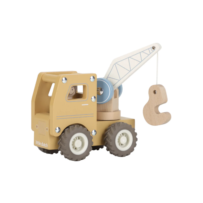 Soulevez et déplacez des charges lourdes avec cette grue robuste ! Le camion-grue en bois a un bras pivotant et est livré avec un ouvrier du bâtiment. Les roues en caoutchouc assurent une conduite en douceur sur le chantier. Conduisez jusqu'au port, chargez les conteneurs et placez-les au bon endroit. Combinez ce jouet grue avec les autres véhicules de construction pour un plaisir de jeu sans fin. La construction peut commencer !