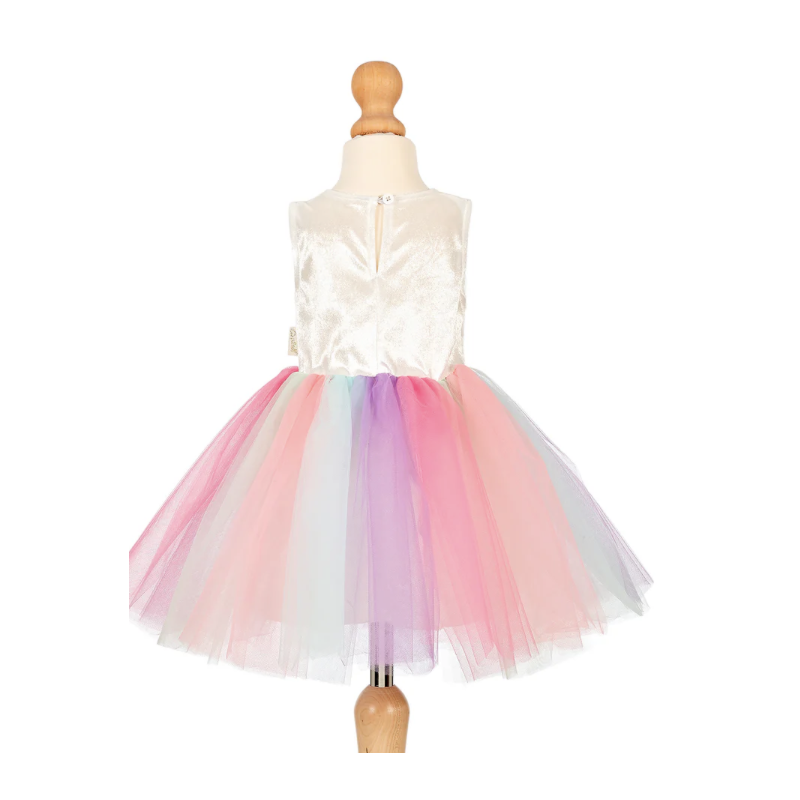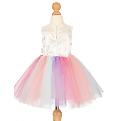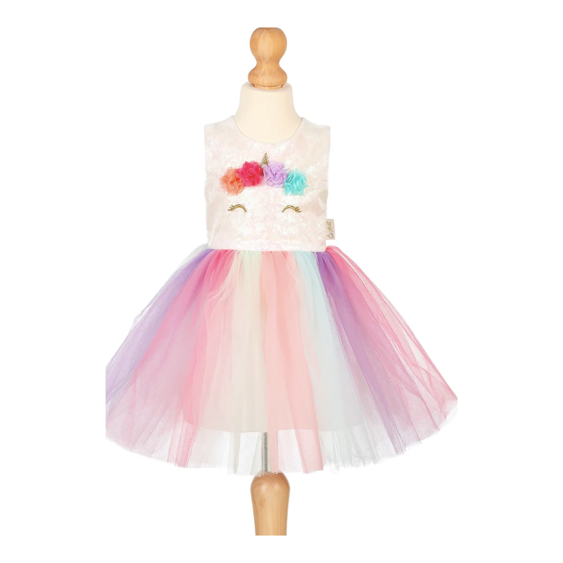 Pendant que cette licorne mange son délicieux gâteau aux fraises, elle réfléchit déjà à la saveur qu'elle veut ensuite. Est-ce que ça va être du chocolat ? Ou peut-être du velours rouge ? Ou non, je veux de la vanille ! Ou je vais juste aller à la fraise à nouveau ! C'est son préféré. Elle pourrait manger ça toute la journée ! La robe est faite à 100 % de polyester. La longueur de la jupe est de 30 cm (2 ans)