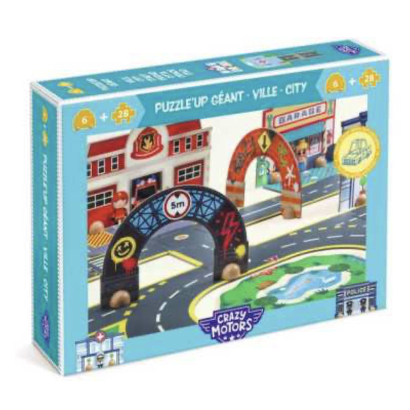 Découvrez le puzzle'Up géant Ville de Djeco, un puzzle géant composé de 33 pièces en carton pour les enfants de 3 à 9 ans. Un coffret parfait pour créer différents circuits et jouer avec les petites voitures Crazy Motors.