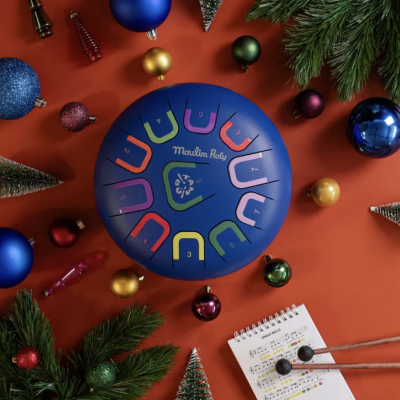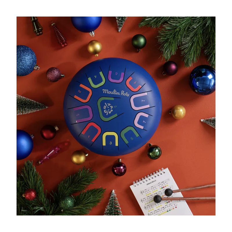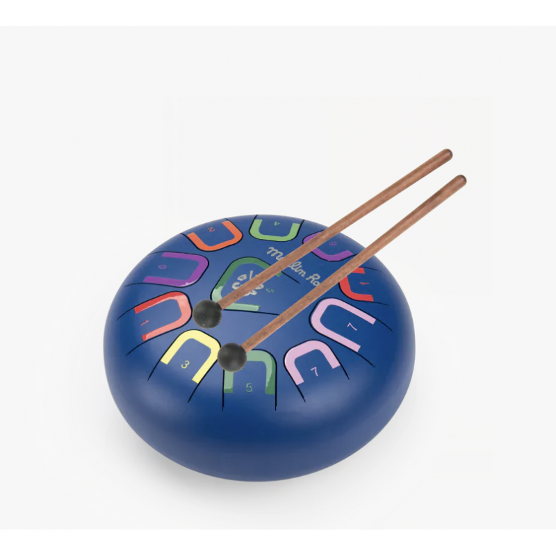 D'un diamètre de 24 cm et comprenant 11 notes, le tambour à languettes initient les enfants à la musique. Avec les doigts, la main ou les baguettes incluses, tout est bon pour danser avec Puce & Pilou. Contient un livret de partitions et un sac en tissu.