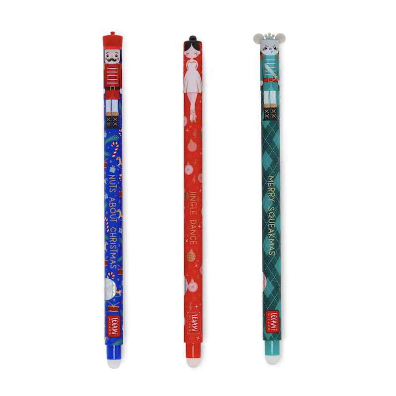 « Cher Papa Noël, cette année je voudrais... » Si vous ne savez pas encore comment poursuivre cette phrase, le Set de 3 Stylo à Encre Gel Effaçable - The Nutcracker de Legami en édition de Noël super colorée est ce qu'il vous faut. Écrivez et réécrivez votre lettre autant que vous le voulez grâce à l'encre thermosensible. Également parfaits pour les cartes de vœux, le marque-place pour le repas de la veille de Noël et des listes de bonnes résolutions !