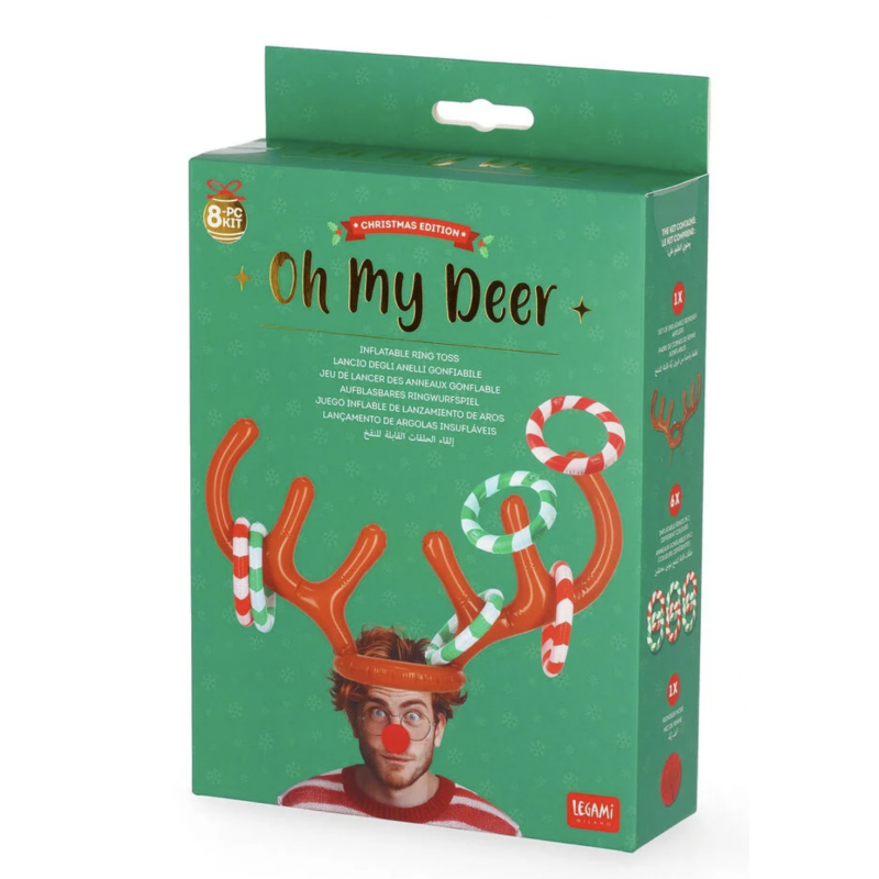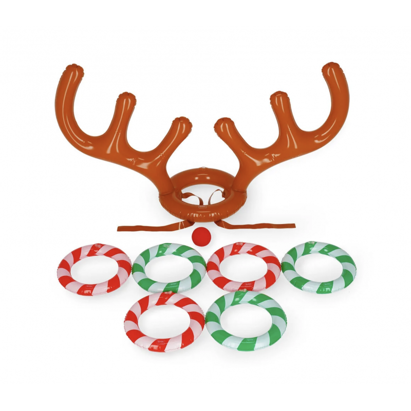 Si vous voulez vraiment viser juste avec votre prochain cadeau, alors vous êtes à la recherche du Jeu de Lancer des Anneaux Gonflable - Oh My Deer de Legami ! Un jeu gonflable parfait pour un Noël empli d'éclats de rire : préparez les cornes, enfilez le nez rouge et tenez-vous prêt à un redoutable défi de précision. Contient : cornes de renne gonflables, 6 anneaux gonflables en 2 couleurs différentes, 1 nez rouge de renne Taille unique Matériau : PVC