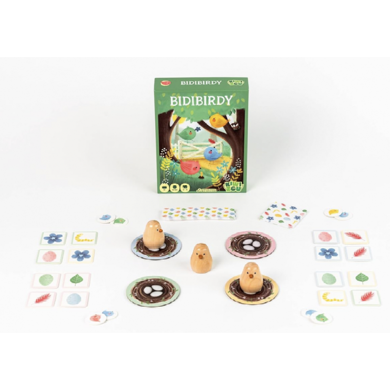 Les œufs sont sur le point d'éclore, et les mamans oiseaux s'affairent à aménager leur nid tout confort. La carte défi révèle quatre éléments de décoration spécifiques, et les joueurs doivent scruter attentivement leurs tuiles recto-verso pour trouver les quatre éléments correspondants. Une fois les éléments identifiés, il est temps d'attraper un oiseau posé au centre de la table !