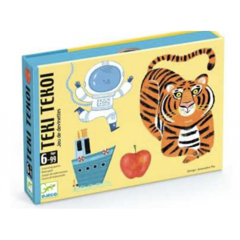 Découvrez Teki Tekoi de Djeco, un jeu de devinettes amusant pour jouer de 2 à 4 joueurs à partir de 6 ans.