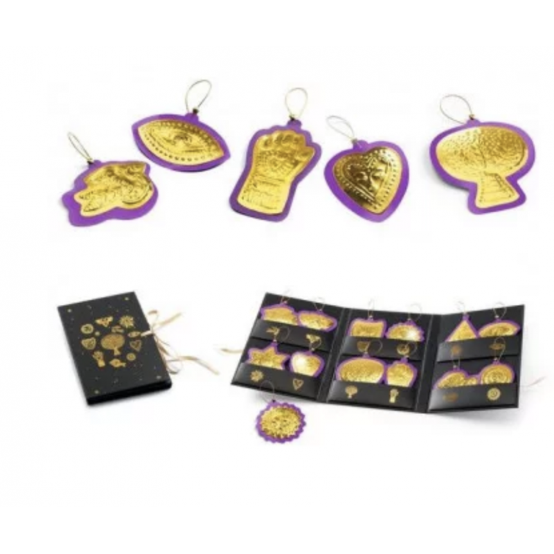 Cette activité originale d'embossage permet de créer de jolis porte-bonheur. Il suffit de repasser sur les illustrations imprimées au dos des stickers métallisés et, comme par magie, le volume apparaît de l'autre côté. 12 amulettes à collectionner dans la pochette fournie, ou à offrir.