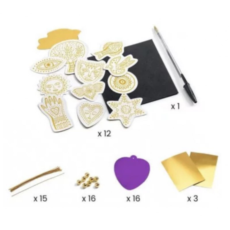 Découvrez le coffret Amulettes métal à créer Porte-bonheur de la collection Do It Yourself de Djeco, un coffret créatif permettant aux enfants dès 7 ans de réaliser 12 amulettes porte-bonheur.