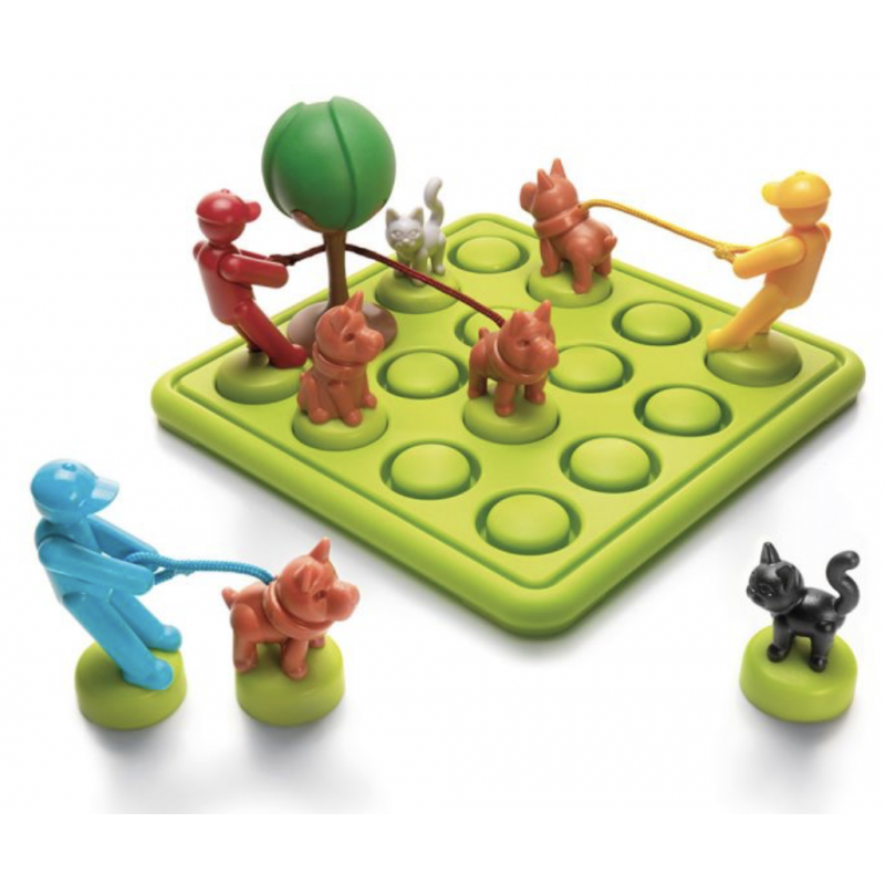 Logique et déduction seront nécessaires afin de placer aux bons endroits les promeneurs et leur chien sans que les laisses ne s’emmêlent!