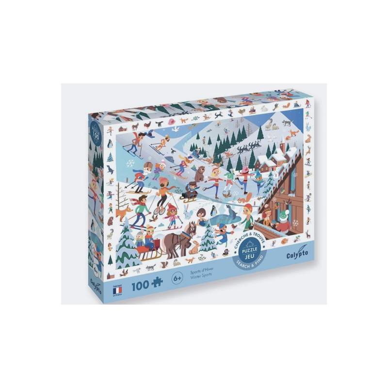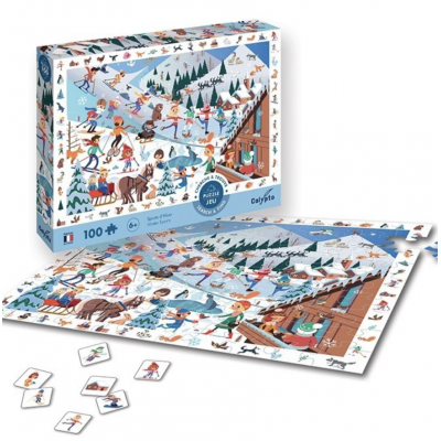 Un grand puzzle de 100 pièces sur les sports d'hiver. Avec ce puzzle les enfants vont découvrir les activités à la montagne. Il est accompagné de son poster à taille réelle pour aider à le reconstituer et ensuite essayer de recommencer la réalisation de celui-ci seul. Le puzzle terminé, votre enfant va pouvoir s'amuser seul où en famille à retrouver les 50 illustrations présentes sur les pions. Dès 6 ans, votre enfant va pouvoir travailler le sens de l'observation, la mémoire et la logique.