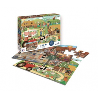 Deux puzzles sont proposés dans ces boîtes pour permettre l’évolution de l’enfant. Dans un premier temps, il pourra séparer les pièces de chaque puzzle par le motif du verso, puis reconstituer son dessin en se basant sur le modèle et enfin le réaliser seul grâce à son sens de l’observation, sa mémoire ou sa logique.Les modèles sont complémentaires : Vie à la campagne - Vie à la ville, Animaux sauvages d’Amérique du Nord - Animaux sauvages d’Afrique et Dans les sous-bois - Au clair de lune.