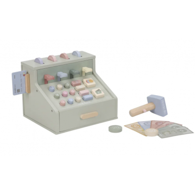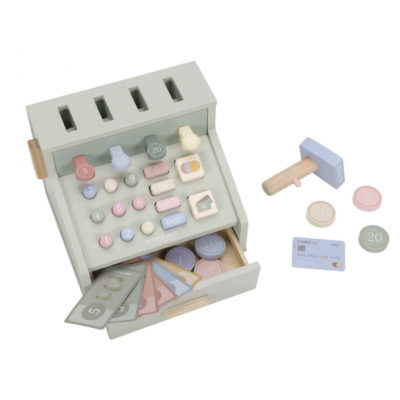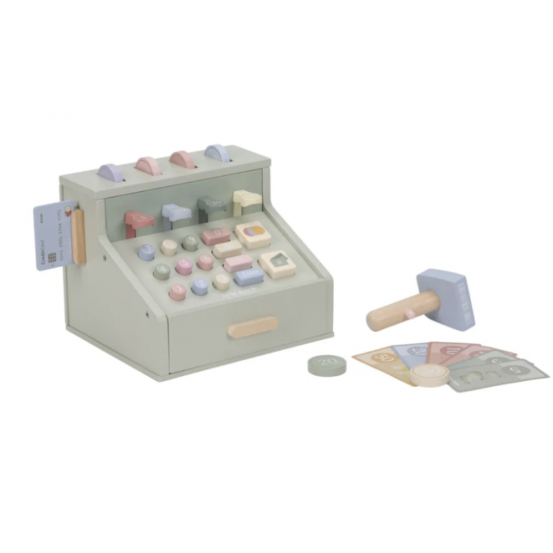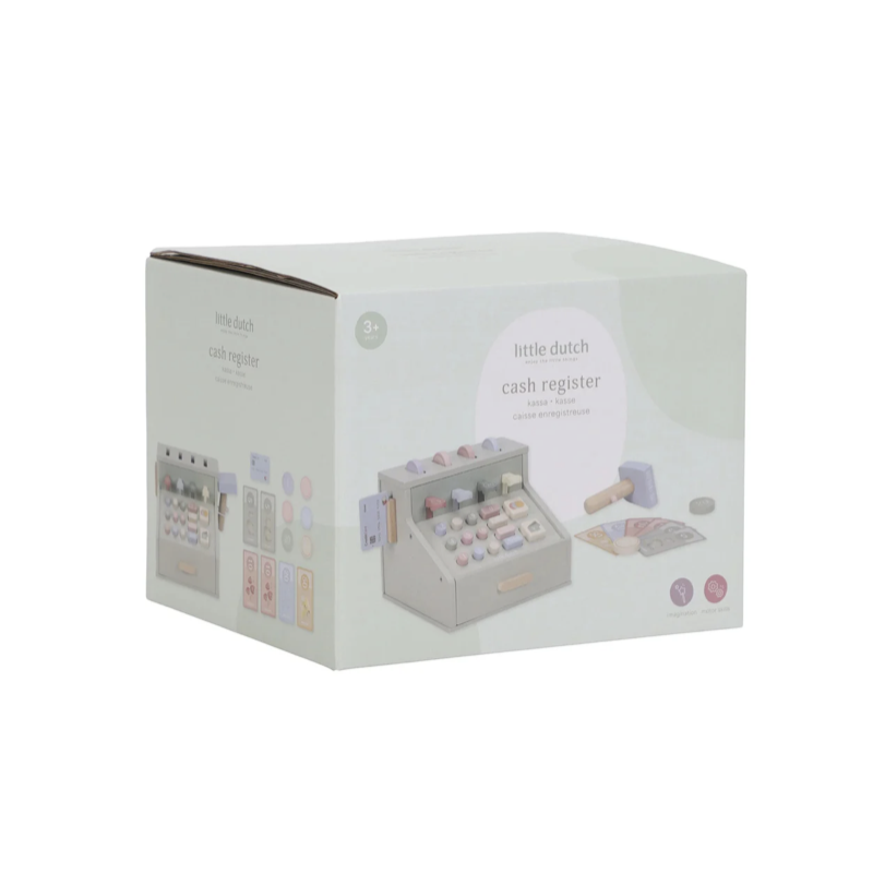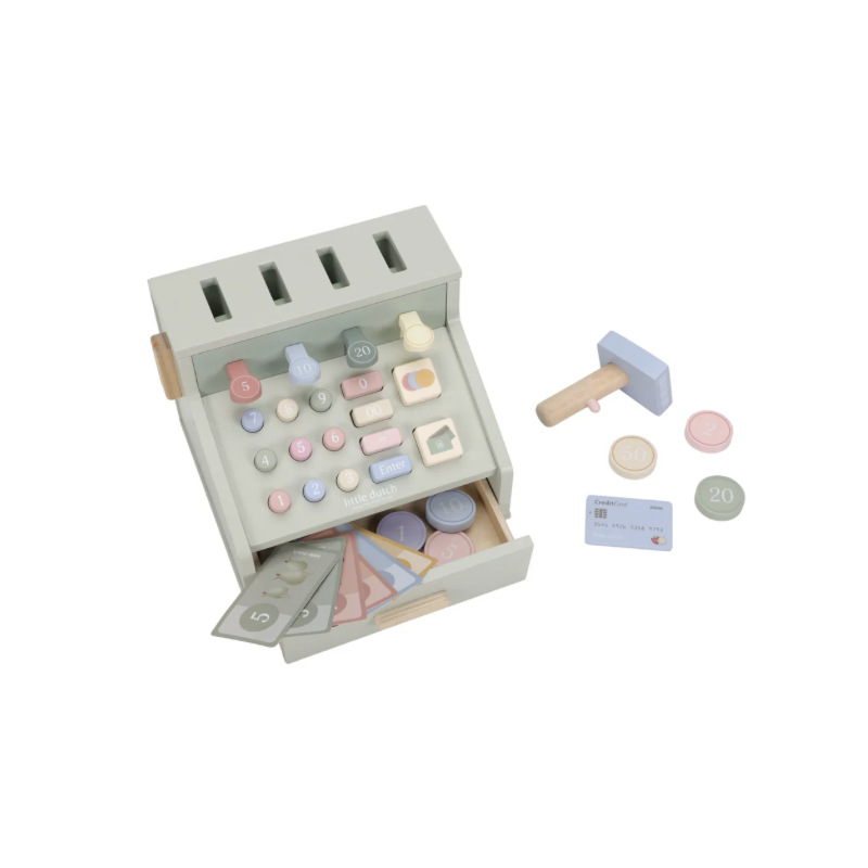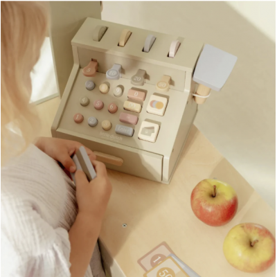 Compter, scanner et payer ! Avec cette caisse enregistreuse en bois, jouer à la marchande devient encore plus réel. La caisse est équipée d'un scanner, d'un lecteur de carte bancaire, de boutons et d'un tiroir-caisse pour les pièces et les billets. Il y a aussi une carte bancaire incluse, permettant aux clients de payer en espèces ou par carte. Une manière fantastique de se familiariser de manière ludique avec l'argent et les chiffres. Que désirez-vous aujourd'hui ?