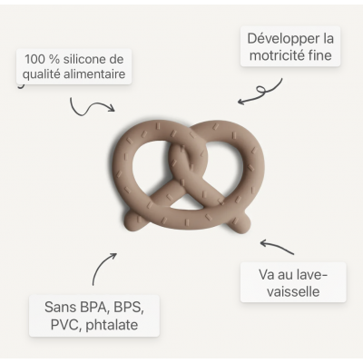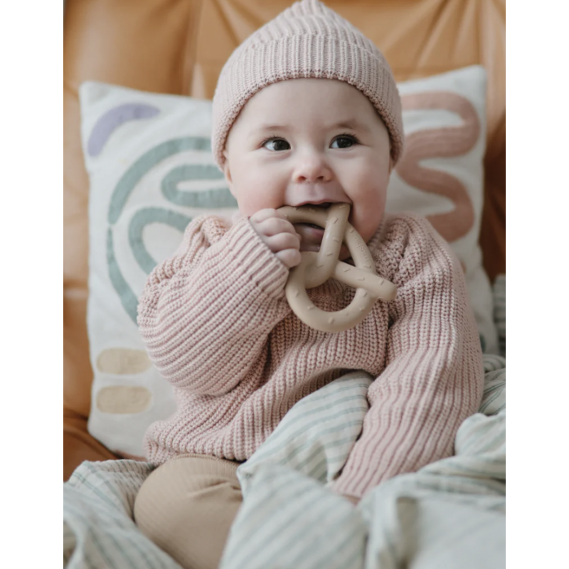 Aidez à apaiser les gencives irritées de votre bébé avec notre gamme de dentitions de bretzel. Fabriqués à partir de silicone 100 % non toxique de qualité alimentaire et conçus pour être faciles à saisir par de minuscules doigts, nos anneaux de dentition de bretzel sont sûrs pour votre bébé. Leur design ludique et leurs couleurs sophistiquées en font un ajout élégant à votre maison.