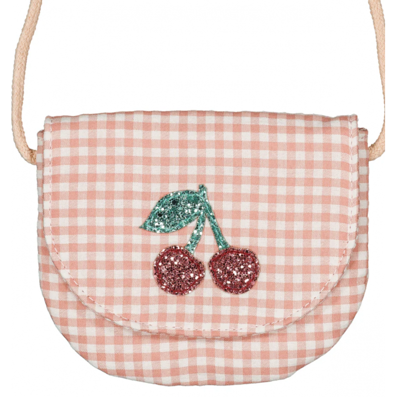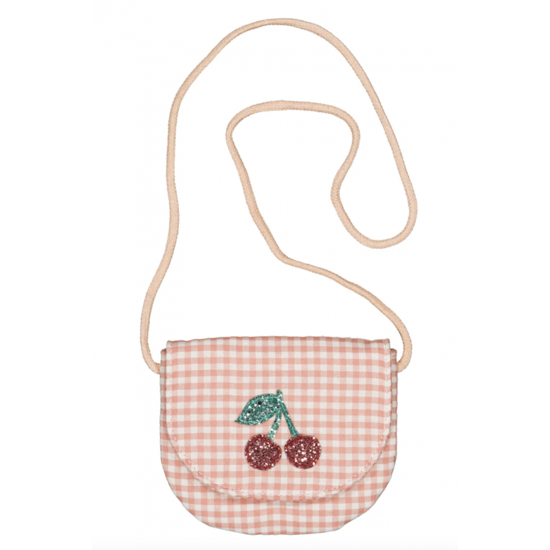 Adorablement rétro avec son vichy rose, il est orné d'une cerise pailletée sur le rabat pour une touche gourmande et estivale. Idéal pour que votre enfant transporte ses indispensables avec style.
