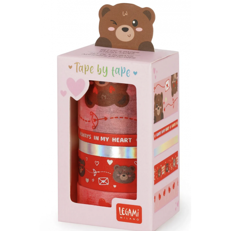 Tape By Tape Teddy Bear Legami est le Set de 5 Rubans Adhésifs en Papier coloré de 5 mètres pour coller, décorer et personnaliser tous vos accessoires.