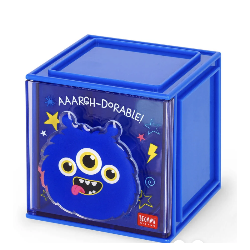 Empiler, associer, dissocier, révolutionner ! La Boîte Empilable de Bureau - Cutie Cube - Monster de Legami n'attend qu'à être associée à d'autres pour créer le parfait organiseur multifonction de bureau pour vos fournitures. Collectionne-les toutes : plus il y a de boîtes, plus il y a de combinaisons !