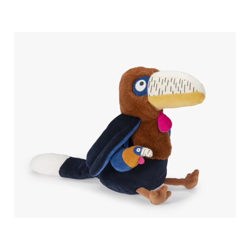 Litchi le joyeux calao cache sous ses ailes d'innombrables activités : anneau à billes colorées, grelots, feuille qui fait scritch... Autant de choses à toucher et secouer pour le plaisir de bébé !