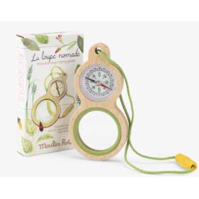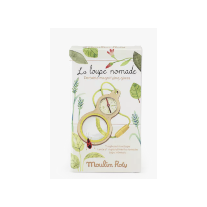 La loupe nomade du Botaniste vous permettra d'observer les insectes les plus petits à l'aide de sa loupe au triple grossissement (x2, x3 & x4). Équipée d'une boussole, elle vous orientera à travers le jardin à la recherche des plus beaux trésors.