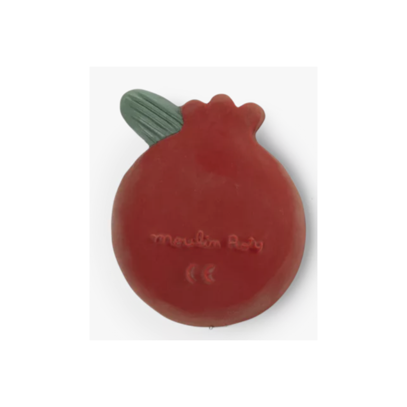 Fruit de dentition 100% caoutchouc naturel, issu de la sève d'Hévéa. En forme de grenade, il est facile à manipuler pour soulager les dents. Sans trou ni sifflet pour éviter l'accumulation de saletés à l'intérieur, il s'utilise sans problème dans le bain.