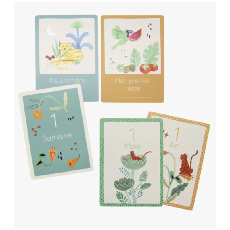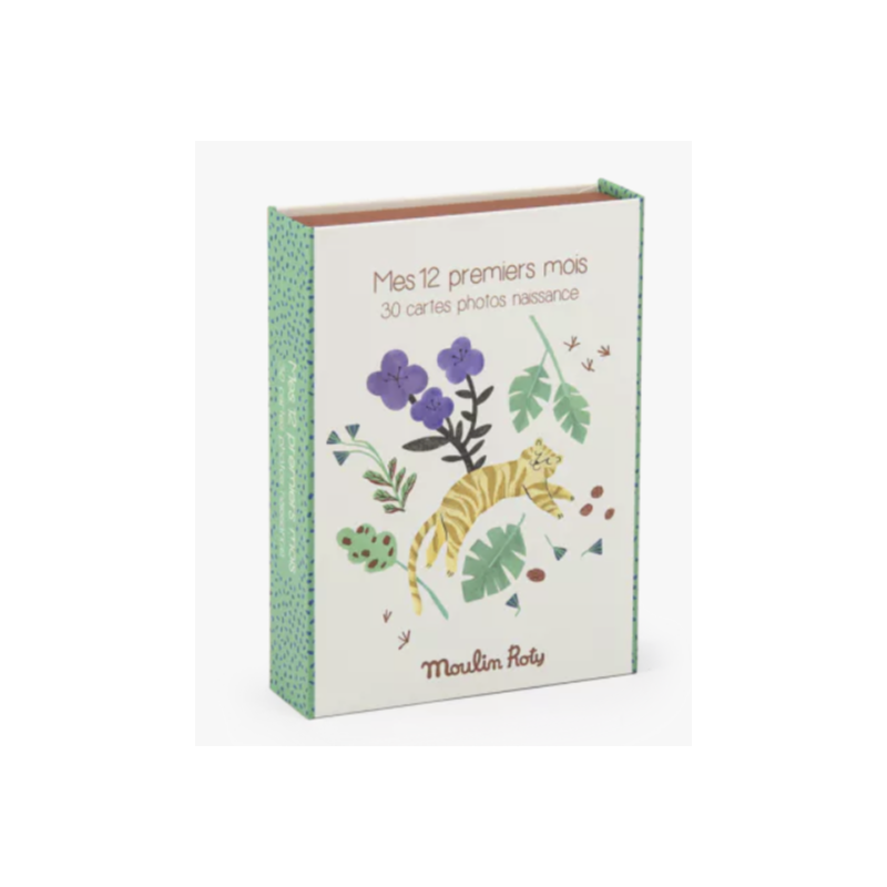 Coffret de 30 cartes pour immortaliser bébé dans les grandes étapes de ses 12 premiers mois. Chaque carte est illustrée d'un côté avec les personnages de la forêt Mawa et de l'autre un espace pour coller la photo et garder en mémoire les beaux souvenirs.