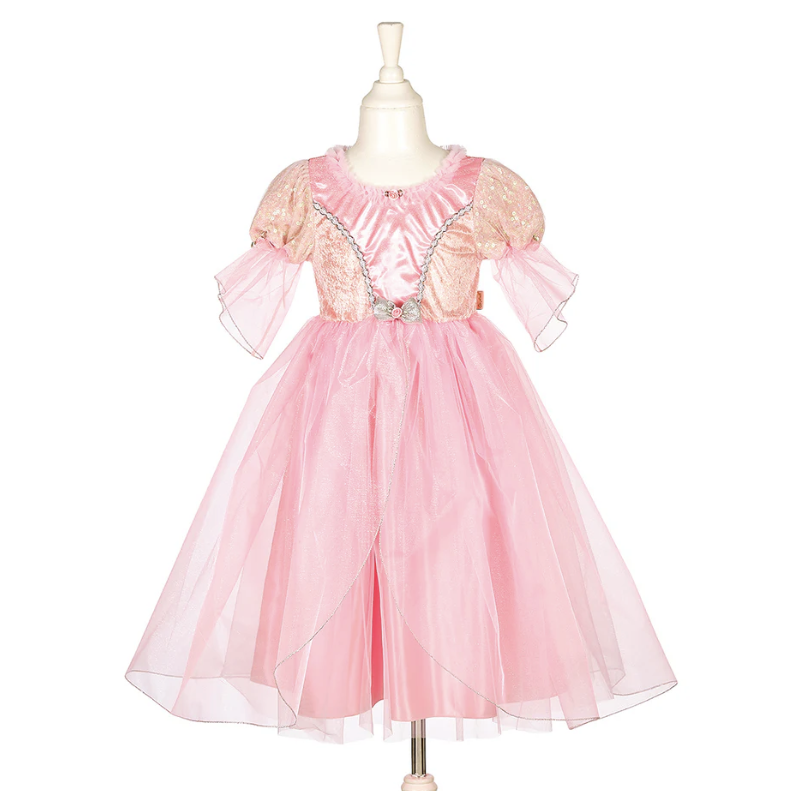 La princesse Annerose sourit alors que ses amis papillons voltigent autour d'elle, chuchotant des secrets du jardin enchanté. Avec un cœur plein de générosité, elle rit et se lève pour aller raconter à ses amis tout ce qu'elle a appris au bal de ce soir ! Cette robe de princesse est faite à 100 % de polyester.