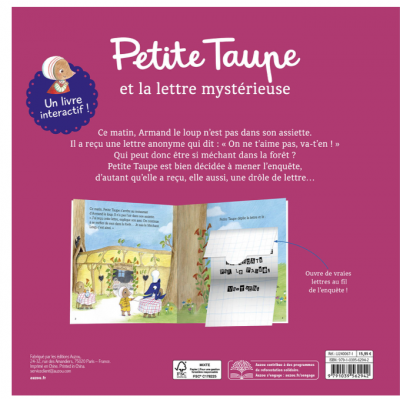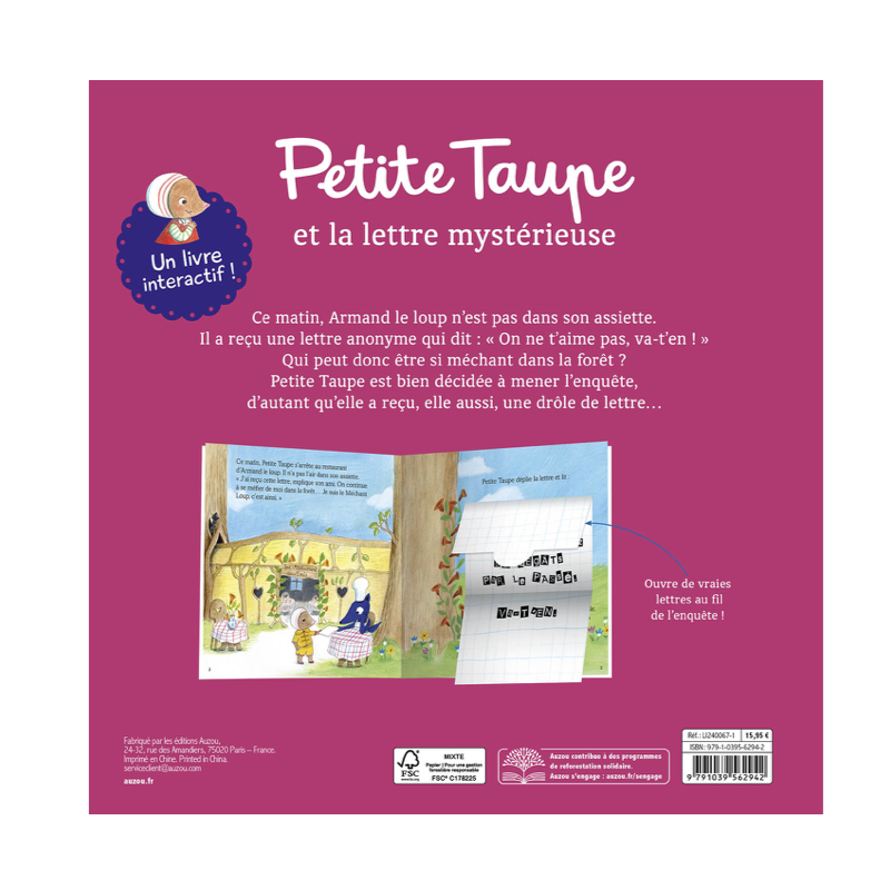 Ce matin Armand le loup a reçu une drôle de lettre qui le menace… Mais qui a bien pu écrire cette lettre ? Le loup fait maintenant partie des amis de la forêt et tout le monde l’apprécie. Petit Taupe doit mener l’enquête !