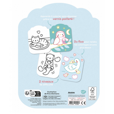 Découvre tes nouveaux coloriages fluos sur le thème des bébés animaux avec deux niveaux de difficulté : le premier niveau pour apprendre à bien colorier sans dépasser avec l'aide du vernis à paillettes et le deuxième niveau sans vernis à paillettes pour montrer tes talents !