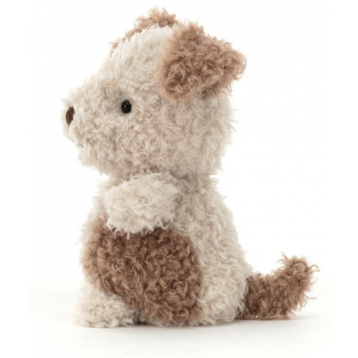 Cette adorable peluche chien, de couleur beige et marron est toute douce et parfaite pour faire de gros câlins.