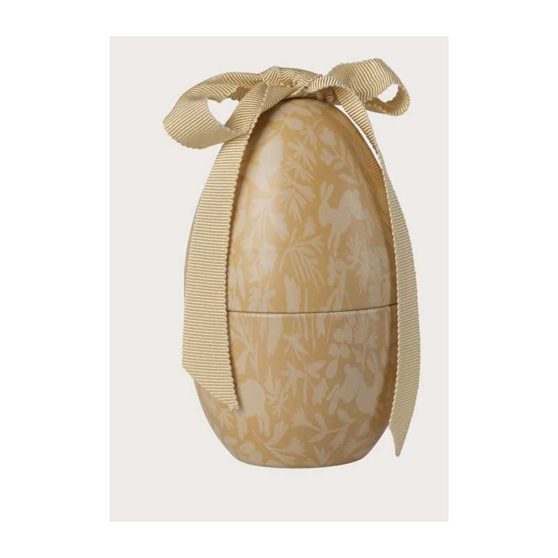 L'œuf de Pâques de Maileg a une nouvelle et magnifique impression. Admirez les illustrations et essayez de découvrir tous les différents animaux. L’œuf est orné d’un grand nœud souple sur le dessus, lui donnant une allure élégante et exclusive.