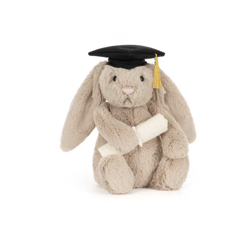 Youpi, Bashful Bunny a obtenu son diplôme ! Et Bartholomew Bear ne manquerait pour rien au monde la cérémonie. Après tout, toute occasion de se mettre sur son 31 et de s’inviter sur les photos officielles de Bashful est bonne à prendre…