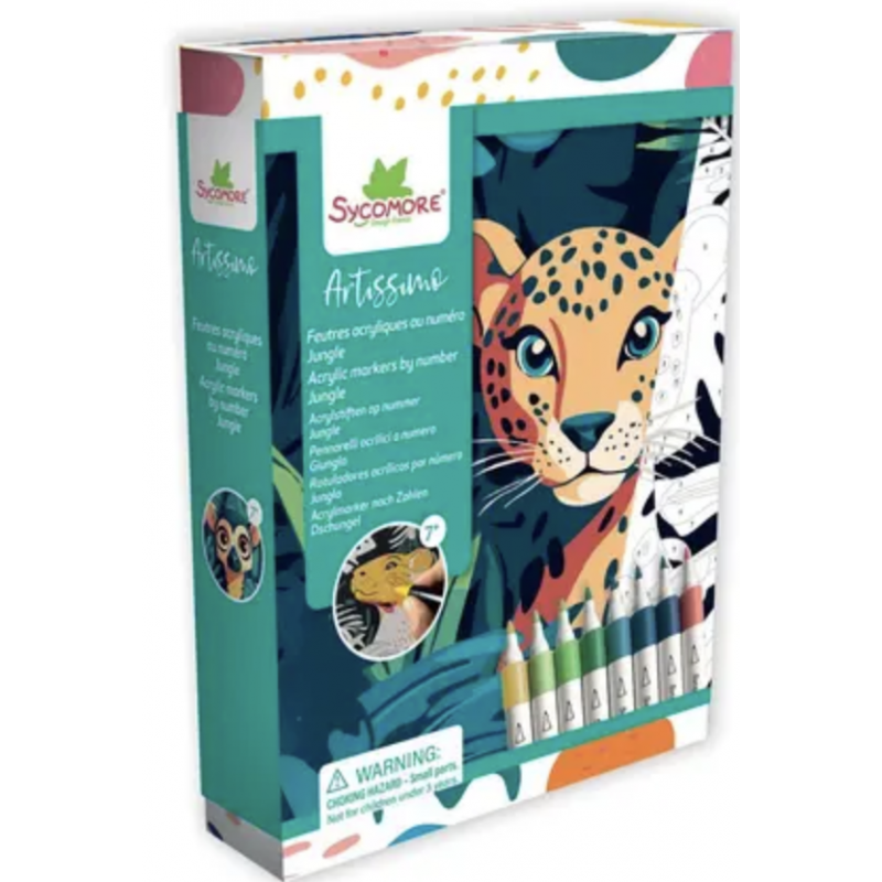 Contient : 3 tableaux (20 x 14 cm), 8 feutres acryliques numérotés et une notice.