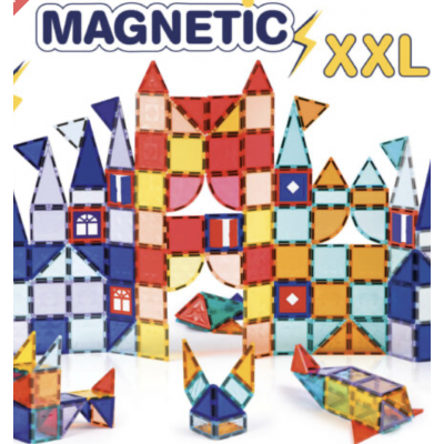 Jeu de construction magnétique XXL avec 100 pièces aimantées colorées, conçu pour créer en 2D et 3D. Stimule l’imagination, la motricité fine et la pensée logique dès 3 ans.