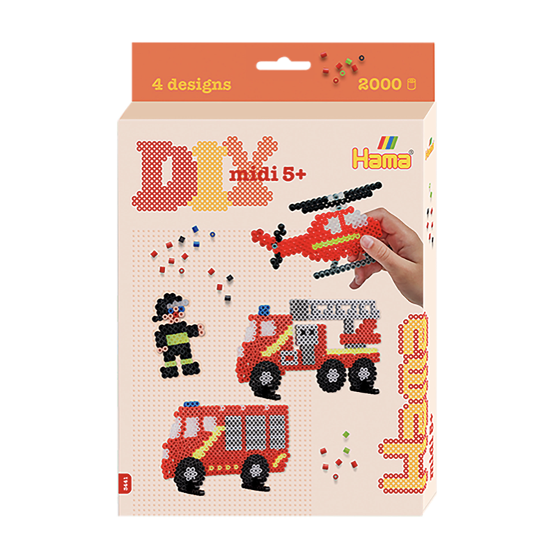 Env. 2.000 perles, 1 plaque camion réf. 314, 4 supports pour motifs réalisés, feuille de modèles en couleur, instructions et papier à repasser.
