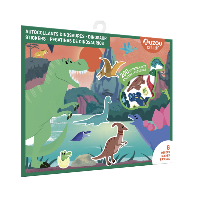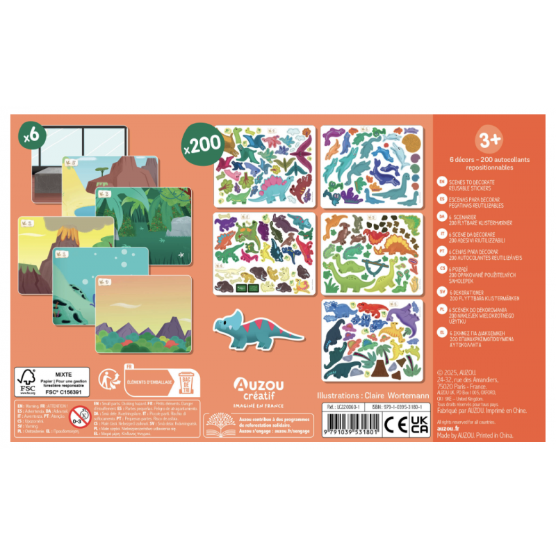 Avec tes autocollants, anime tes décors et amuse-toi à placer plein de dinosaures dans la jungle, près du volcan ou dans la mer ! Découvre 6 magnifiques décors à animer !