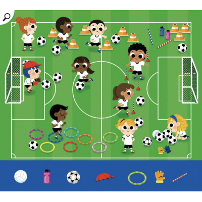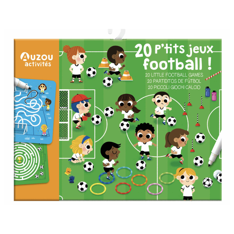 Avec 20 cartes plastifiées, l’enfant s’amuse autour du thème du foot grâce à des labyrinthes, des cherche et trouve, des points à relier et autres jeux.