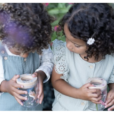 Découvrez le monde des insectes avec ce pot à insectes pratique ! Le couvercle en bois, équipé d'une loupe, vous permet de voir les plus petits détails. Le couvercle peut être facilement retiré, et le pot est décoré avec des illustrations joyeuses Fairy garden. Une carte d'insectes est incluse pour cocher tous les insectes. Le plastique transparent vous permet de voir les insectes sous tous les angles, tandis que les trous d'aération assurent la ventilation. Parfait pour les enfants curieux qui veulent explorer la nature !