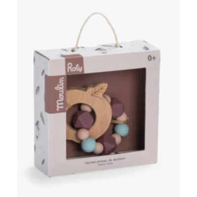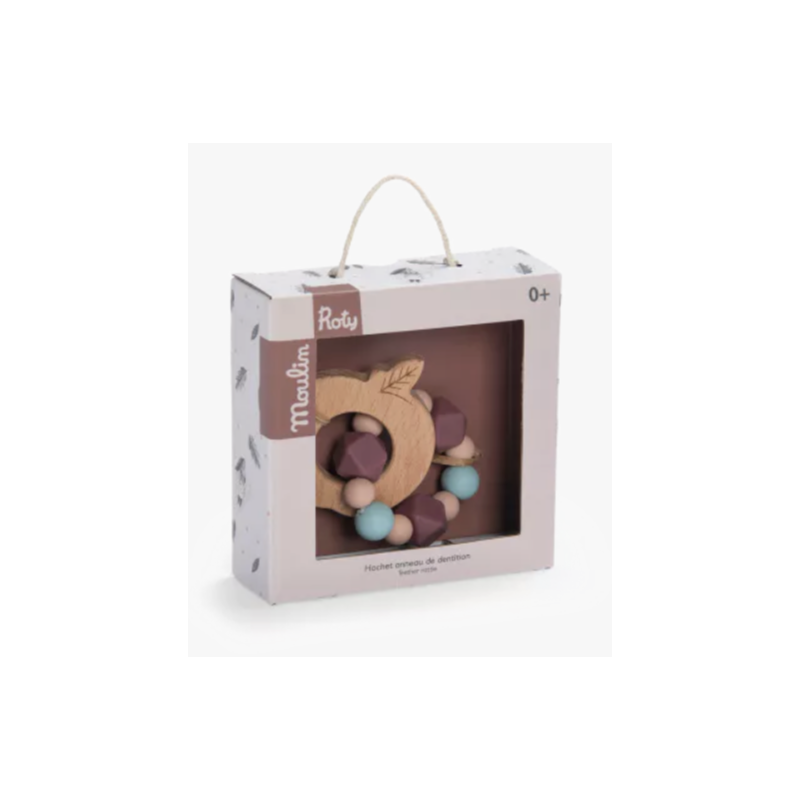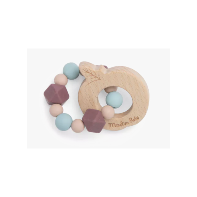 Mâchouiller ou jouer ? Tout est possible avec ce hochet en dentition pomme en bois et silicone. Rond, il est facilement saisissable. Confectionné avec 2 matières différentes, il soulagera au mieux bébé dans ses poussés dentaires douloureuses.