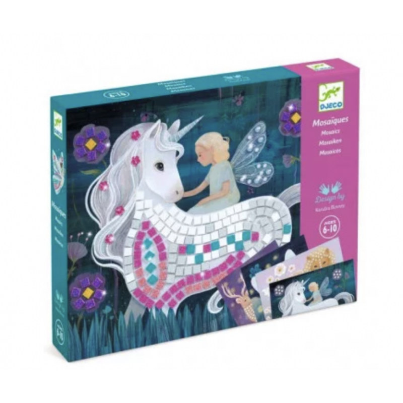 Découvrez le coffret de mosaïques Le monde enchanté de Djeco, une activité créative pour les enfants de 6 à 10 ans qui réaliseront pas à pas 4 magnifiques tableaux de mosaïques pailletées sur le thème du monde enchanté.