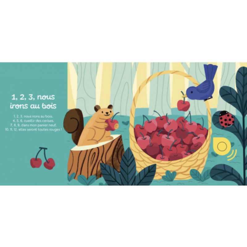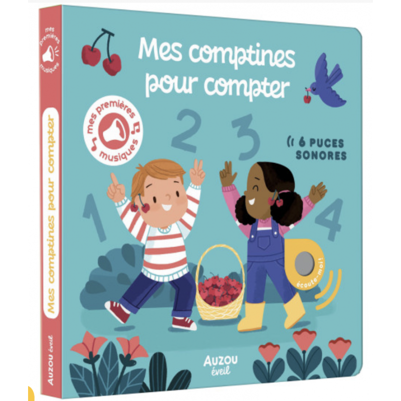Un livre sonore pour s’initier au rythme en découvrant les nombres. Des textes courts, faciles à mémoriser. Liste des comptines : - 1, 2, 3, nous irons au bois - Violette à bicyclette - 1, 2, 3, le chat - Un ciel bleu - Voici ma main - 1, 2, mon cheval 6 puces sonores d’une longévité exceptionnelle.
