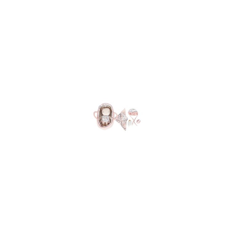 Contient : 1 berceau, 1 poupée en peluche, accessoires bébés
