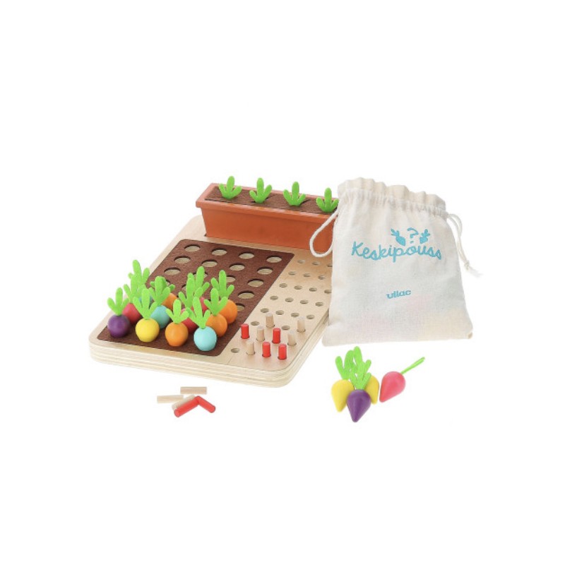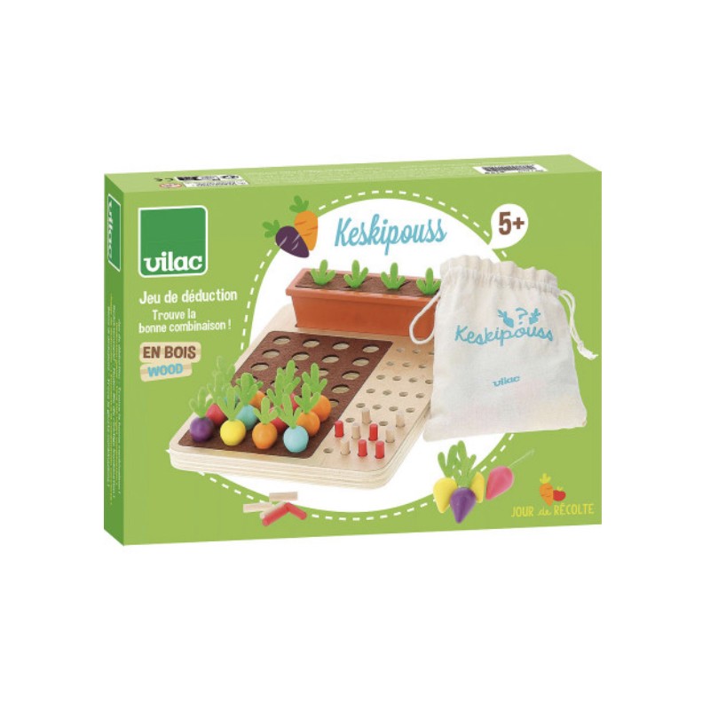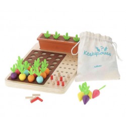 Keskipouss dans le potager ? Des carottes roses ? Des bleues ? Un joueur plante 4 carottes dans sa jardinière, son adversaire doit alors deviner ce qui est caché. En alignant au fur et à mesure des carottes sur le carré potager, il déduit au fur si elles sont bien placées. Le but est de découvrir la bonne combinaison avant la dernière ligne. C'est ludique, c'est naturel, c'est gourmand ! Pour les petits et pour les grands !