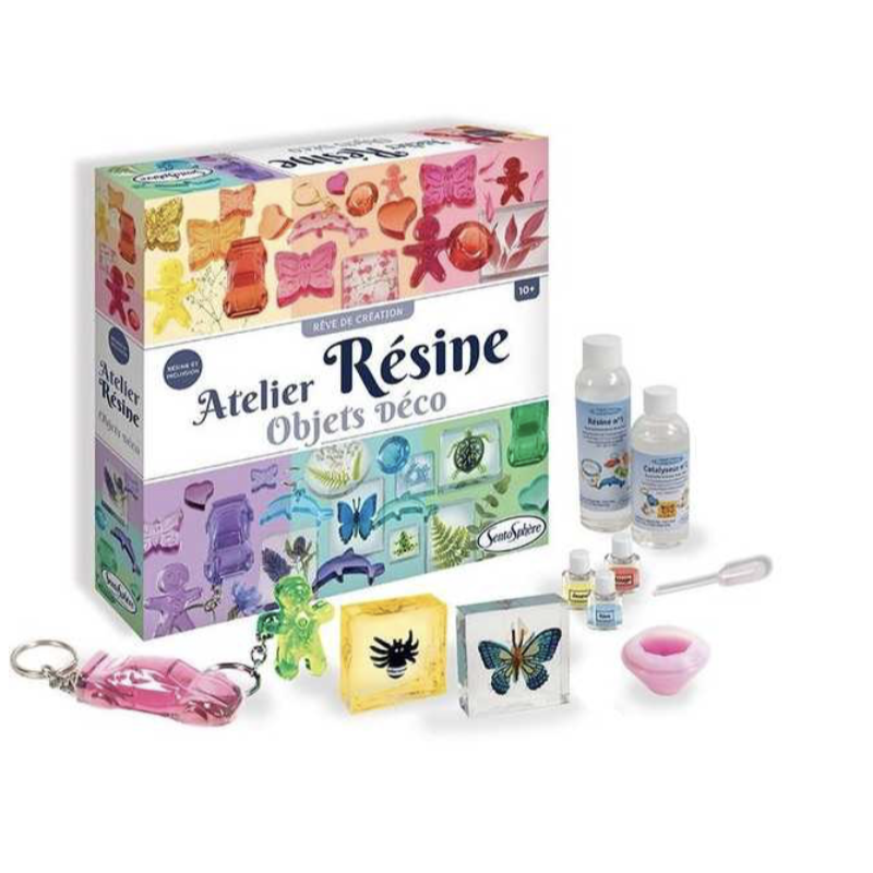 Un coffret créatif pour encapsuler ses plus beaux souvenir dans de la résine et créer des porte-clés, des presse-papiers et des bibelots !