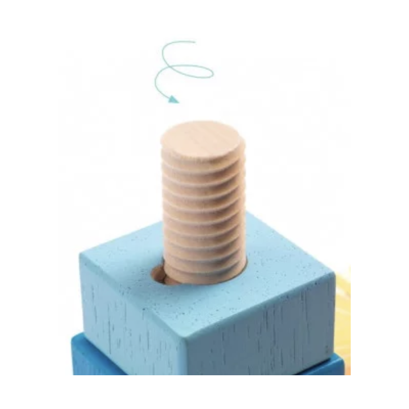Découvrez le jeu éducatif Multi Stacki de Djeco, un jouet en bois dès 18 mois qui fait découvrir à l'enfant 3 manières différentes d'empiler pour créer un singe, un lion et un ours. Chaque pyramide est un animal de couleur différente et chaque axe demande un geste différent: l'enfant empile sur l'axe lisse, il visse sur l'axe en spirale et il pivote sur l'axe à clé.