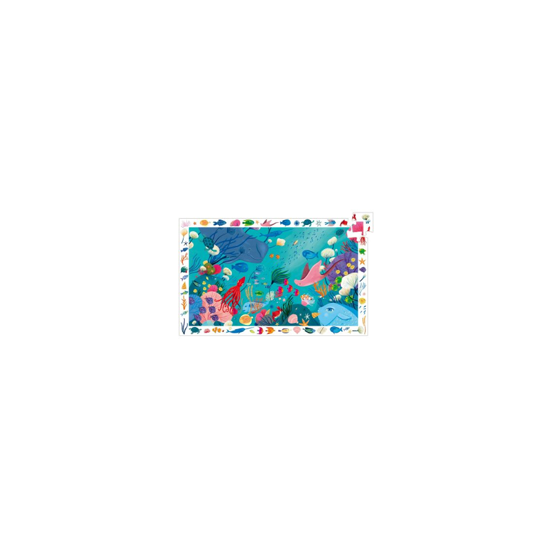 Découvrez le puzzle d'observation aquatique de Djeco, un puzzle magnifiquement illustré de 54 pièces sur le thème de la mer pour les enfants dès 4 ans.