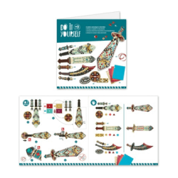 Ce coffret créatif invite votre enfant à décorer 3 sabres avec de la mosaïque.