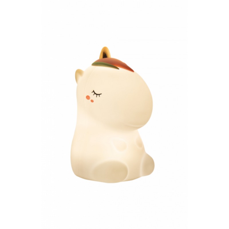 Découvrez la veilleuse licorne blanche Lil'unicorn de LittLe L, une superbe veilleuse souple et douce qui s'illumine d'une belle lumière douce et qui change de couleur. En forme de licorne, vous allez craquer pour cette veilleuse en silicone. Utiliser le bouton marche/arrêt pour allumer ou éteindre la veilleuse, elle s'illumine alors d'une douce lumière blanche. une fois allumée, tapoter sur la lampe une fois pour passer en mode arc en ciel. La veilleuse change alors de couleur progressivement toutes les 3 secondes. Elle possède 7 couleurs. Tapoter une deuxième fois pour que la lampe reste sur la couleur choisie. Puis en tapotant une troisième fois, la veilleuse s'éteint. Cependant il est conseillé d'éteindre la lampe grâce au bouton marche/arrêt afin de ne pas endommager la batterie.