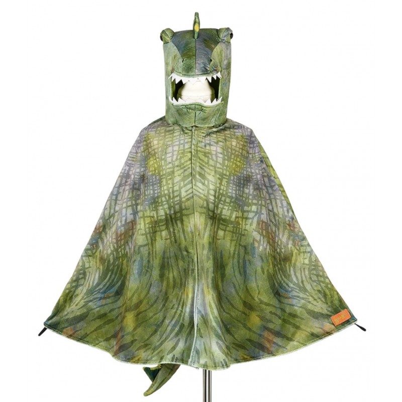 Une sublime cape de T-Rex vert pour imiter à la perfection son dinosaure préféré et avoir l’air féroce.